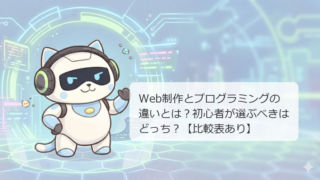 ナビ助「Web制作」と「プログラミング」って似てるようで実は全然違うんだよね!この違いを理解しておくと、学習の方向性がブレなくなるよ。比較表で一気に確認していこう!最初は「Web制作」と「プログラミング」の違いがよくわからなくて、結局どっち...